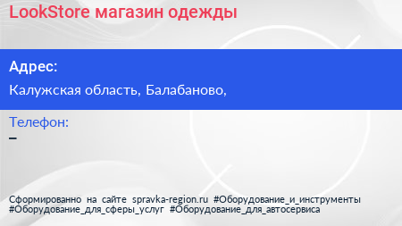 LookStore, магазин одежды по адресу Калужская область, Балабаново, в дальнейшем Организация, размещена в следующих категориях: