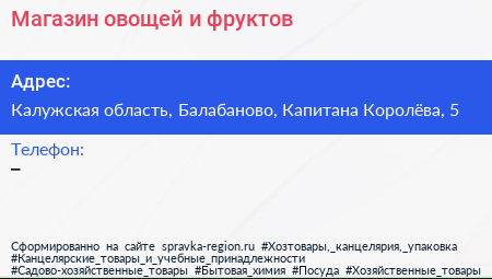 Магазин овощей и фруктов по адресу Калужская область, Балабаново, Капитана Королёва, 5 в дальнейшем Организация, размещена в следующих категориях: