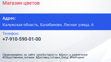 Магазин цветов по адресу Калужская область, Балабаново, Лесная улица, 6 в дальнейшем Организация, размещена в следующих категориях: