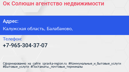Ок Солюшн, агентство недвижимости по адресу Калужская область, Балабаново, в дальнейшем Организация, размещена в следующих категориях: