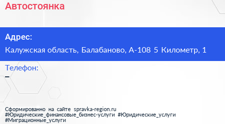 Автостоянка по адресу Калужская область, Балабаново, А-108 5 Километр, 1 в дальнейшем Организация, размещена в следующих категориях: