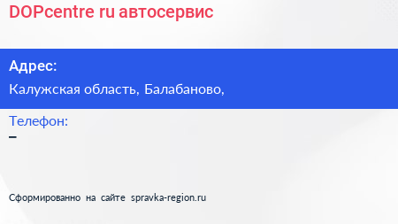 DOPcentre.ru, автосервис по адресу Калужская область, Балабаново, в дальнейшем Организация, размещена в следующих категориях: