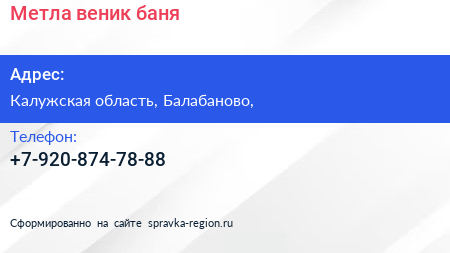 Метла & веник, баня по адресу Калужская область, Балабаново, в дальнейшем Организация, размещена в следующих категориях:
