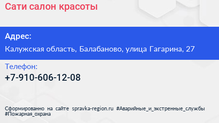Сати, салон красоты по адресу Калужская область, Балабаново, улица Гагарина, 27 в дальнейшем Организация, размещена в следующих категориях: