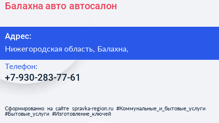 Балахна авто, автосалон по адресу Нижегородская область, Балахна, в дальнейшем Организация, размещена в следующих категориях:
