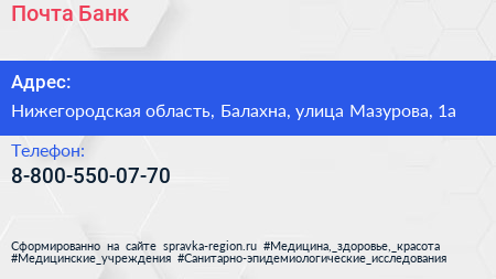 Почта Банк по адресу Нижегородская область, Балахна, улица Мазурова, 1а в дальнейшем Организация, размещена в следующих категориях: