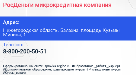 РосДеньги, микрокредитная компания по адресу Нижегородская область, Балахна, площадь Кузьмы Минина, 1 в дальнейшем Организация, размещена в следующих категориях: