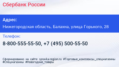 Сбербанк России по адресу Нижегородская область, Балахна, улица Горького, 28 в дальнейшем Организация, размещена в следующих категориях: