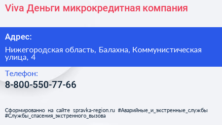 Viva Деньги, микрокредитная компания по адресу Нижегородская область, Балахна, Коммунистическая улица, 4 в дальнейшем Организация, размещена в следующих категориях: