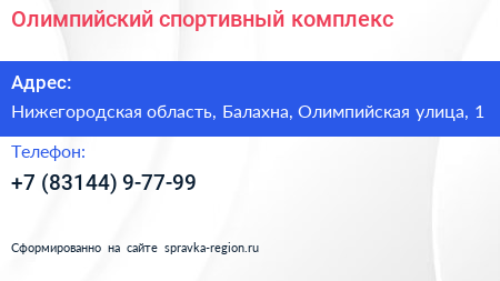 Олимпийский, спортивный комплекс по адресу Нижегородская область, Балахна, Олимпийская улица, 1 в дальнейшем Организация, размещена в следующих категориях: