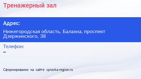 Тренажерный зал по адресу Нижегородская область, Балахна, проспект Дзержинского, 38 в дальнейшем Организация, размещена в следующих категориях: