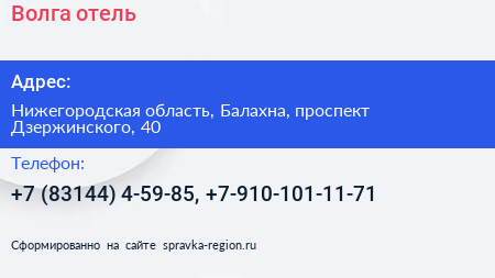 Волга, отель по адресу Нижегородская область, Балахна, проспект Дзержинского, 40 в дальнейшем Организация, размещена в следующих категориях: