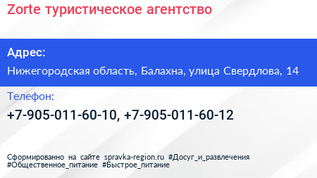 Zorte, туристическое агентство по адресу Нижегородская область, Балахна, улица Свердлова, 14 в дальнейшем Организация, размещена в следующих категориях: