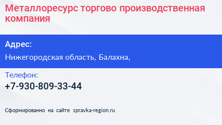 Металлоресурс, торгово-производственная компания по адресу Нижегородская область, Балахна, в дальнейшем Организация, размещена в следующих категориях: