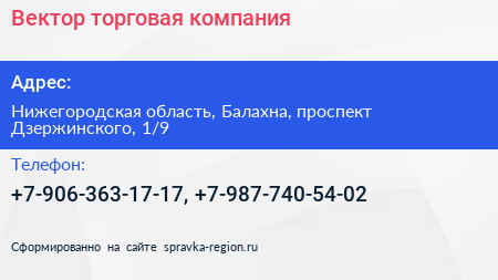 Вектор, торговая компания по адресу Нижегородская область, Балахна, проспект Дзержинского, 1/9 в дальнейшем Организация, размещена в следующих категориях: