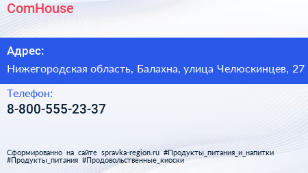 ComHouse по адресу Нижегородская область, Балахна, улица Челюскинцев, 27 в дальнейшем Организация, размещена в следующих категориях: