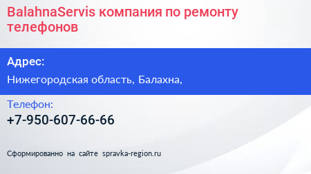 BalahnaServis, компания по ремонту телефонов по адресу Нижегородская область, Балахна, в дальнейшем Организация, размещена в следующих категориях: