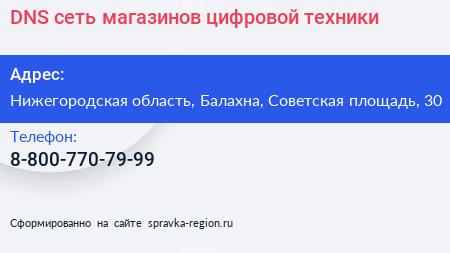 DNS, сеть магазинов цифровой техники по адресу Нижегородская область, Балахна, Советская площадь, 30 в дальнейшем Организация, размещена в следующих категориях:
