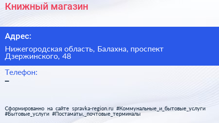 Книжный магазин по адресу Нижегородская область, Балахна, проспект Дзержинского, 48 в дальнейшем Организация, размещена в следующих категориях: