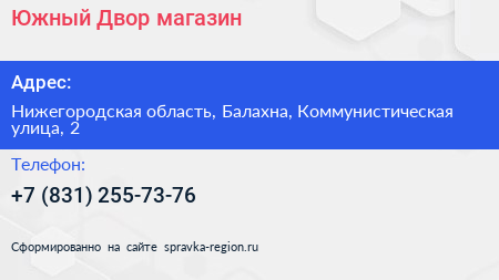 Южный Двор, магазин по адресу Нижегородская область, Балахна, Коммунистическая улица, 2 в дальнейшем Организация, размещена в следующих категориях: