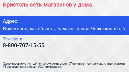 Бристоль, сеть магазинов у дома по адресу Нижегородская область, Балахна, улица Челюскинцев, 5 в дальнейшем Организация, размещена в следующих категориях: