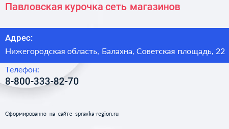Павловская курочка, сеть магазинов по адресу Нижегородская область, Балахна, Советская площадь, 22 в дальнейшем Организация, размещена в следующих категориях: