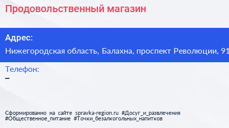 Продовольственный магазин по адресу Нижегородская область, Балахна, проспект Революции, 91 в дальнейшем Организация, размещена в следующих категориях:
