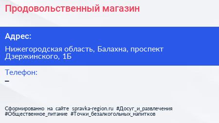 Продовольственный магазин по адресу Нижегородская область, Балахна, проспект Дзержинского, 1Б в дальнейшем Организация, размещена в следующих категориях:
