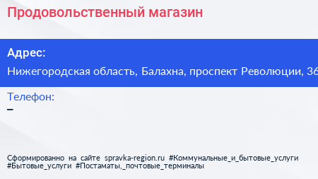 Продовольственный магазин по адресу Нижегородская область, Балахна, проспект Революции, 36 в дальнейшем Организация, размещена в следующих категориях: