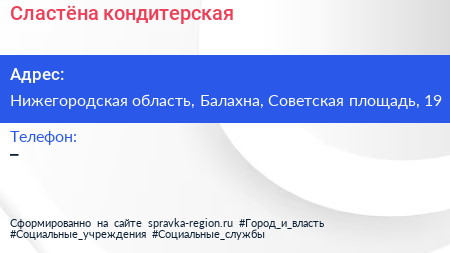 Сластёна, кондитерская по адресу Нижегородская область, Балахна, Советская площадь, 19 в дальнейшем Организация, размещена в следующих категориях: