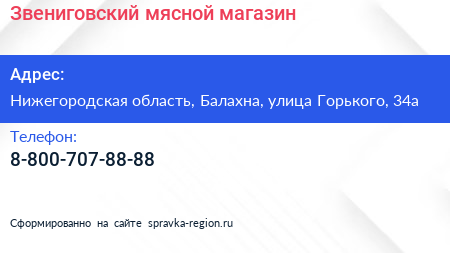Звениговский, мясной магазин по адресу Нижегородская область, Балахна, улица Горького, 34а в дальнейшем Организация, размещена в следующих категориях: