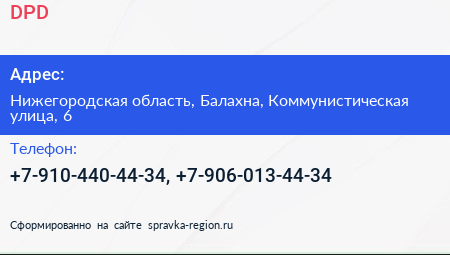 DPD по адресу Нижегородская область, Балахна, Коммунистическая улица, 6 в дальнейшем Организация, размещена в следующих категориях: