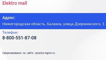 Elektro-mall по адресу Нижегородская область, Балахна, улица Дзержинского, 1 в дальнейшем Организация, размещена в следующих категориях: