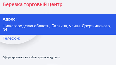 Березка, торговый центр по адресу Нижегородская область, Балахна, улица Дзержинского, 34 в дальнейшем Организация, размещена в следующих категориях: