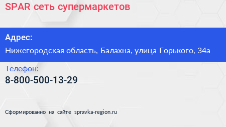 SPAR, сеть супермаркетов по адресу Нижегородская область, Балахна, улица Горького, 34а в дальнейшем Организация, размещена в следующих категориях: