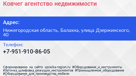 Ковчег, агентство недвижимости по адресу Нижегородская область, Балахна, улица Дзержинского, 40 в дальнейшем Организация, размещена в следующих категориях: