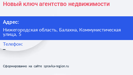 Новый ключ, агентство недвижимости по адресу Нижегородская область, Балахна, Коммунистическая улица, 5 в дальнейшем Организация, размещена в следующих категориях: