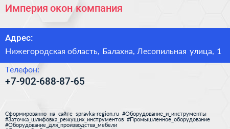Империя окон, компания по адресу Нижегородская область, Балахна, Лесопильная улица, 1 в дальнейшем Организация, размещена в следующих категориях: