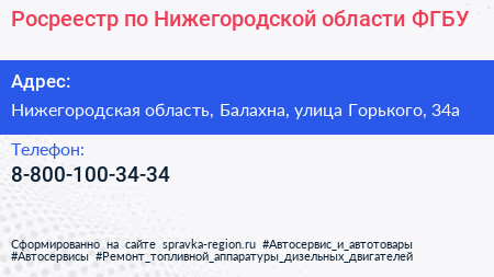Росреестр по Нижегородской области, ФГБУ по адресу Нижегородская область, Балахна, улица Горького, 34а в дальнейшем Организация, размещена в следующих категориях: