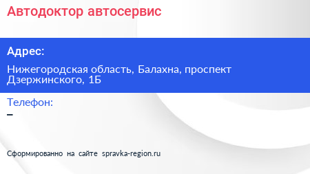 Автодоктор, автосервис по адресу Нижегородская область, Балахна, проспект Дзержинского, 1Б в дальнейшем Организация, размещена в следующих категориях: