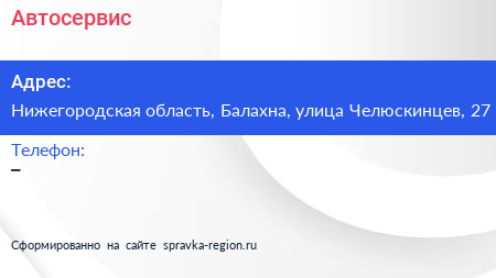 Автосервис по адресу Нижегородская область, Балахна, улица Челюскинцев, 27 в дальнейшем Организация, размещена в следующих категориях: