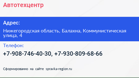Автотехцентр по адресу Нижегородская область, Балахна, Коммунистическая улица, 4 в дальнейшем Организация, размещена в следующих категориях: