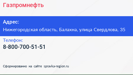 Газпромнефть по адресу Нижегородская область, Балахна, улица Свердлова, 35 в дальнейшем Организация, размещена в следующих категориях:
