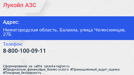 Лукойл, АЗС по адресу Нижегородская область, Балахна, улица Челюскинцев, 27Б в дальнейшем Организация, размещена в следующих категориях: