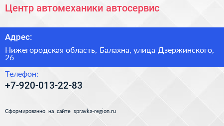 Центр автомеханики, автосервис по адресу Нижегородская область, Балахна, улица Дзержинского, 26 в дальнейшем Организация, размещена в следующих категориях:
