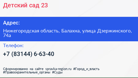 Детский сад №23 по адресу Нижегородская область, Балахна, улица Дзержинского, 74а в дальнейшем Организация, размещена в следующих категориях: