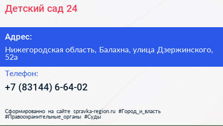Детский сад №24 по адресу Нижегородская область, Балахна, улица Дзержинского, 52а в дальнейшем Организация, размещена в следующих категориях: