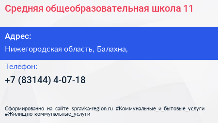 Средняя общеобразовательная школа №11 по адресу Нижегородская область, Балахна, в дальнейшем Организация, размещена в следующих категориях: