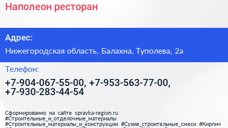 Наполеон, ресторан по адресу Нижегородская область, Балахна, Туполева, 2а в дальнейшем Организация, размещена в следующих категориях: