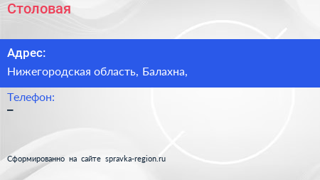 Столовая по адресу Нижегородская область, Балахна, в дальнейшем Организация, размещена в следующих категориях: